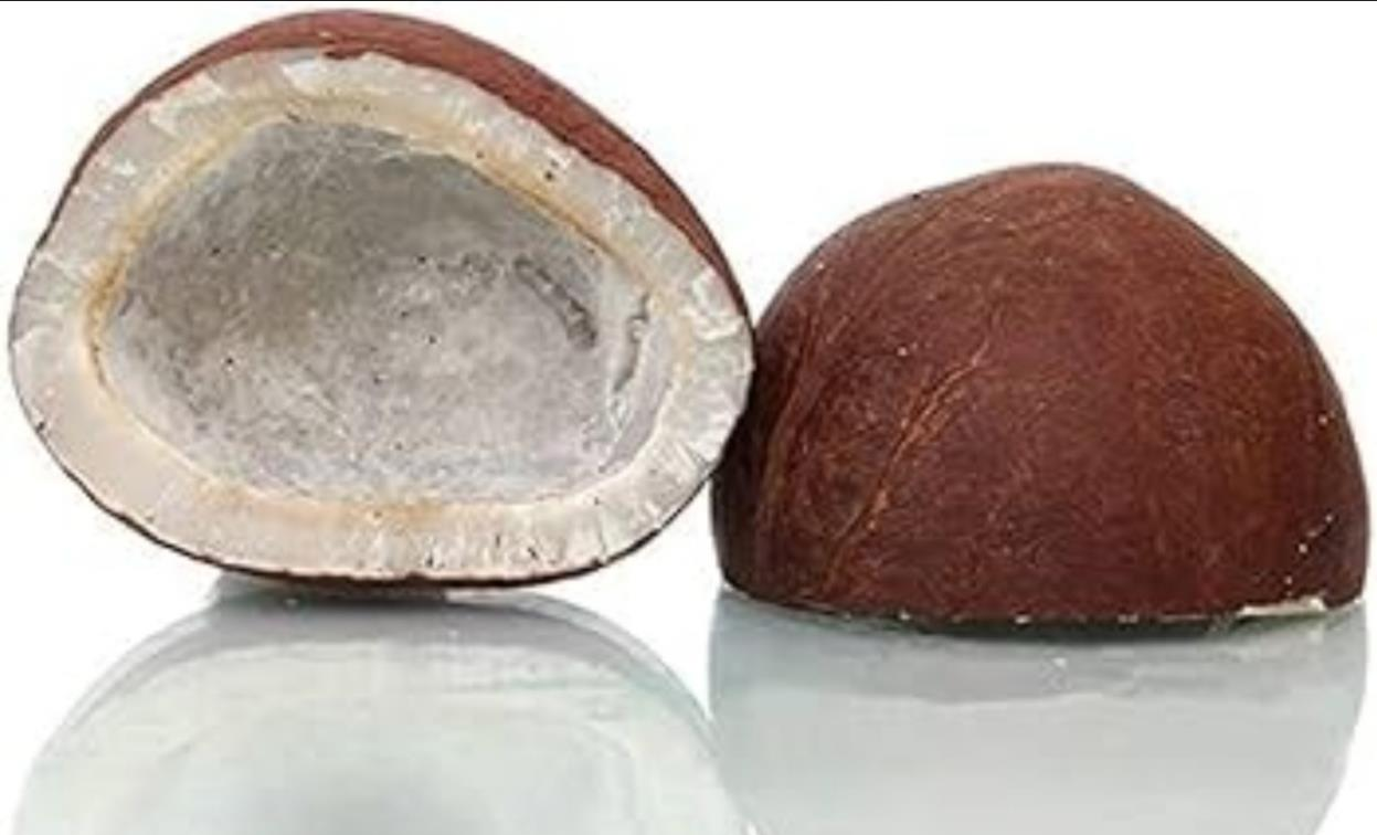 coconut-growing regions. The husk is fully removed, leaving a clean and firm shell that